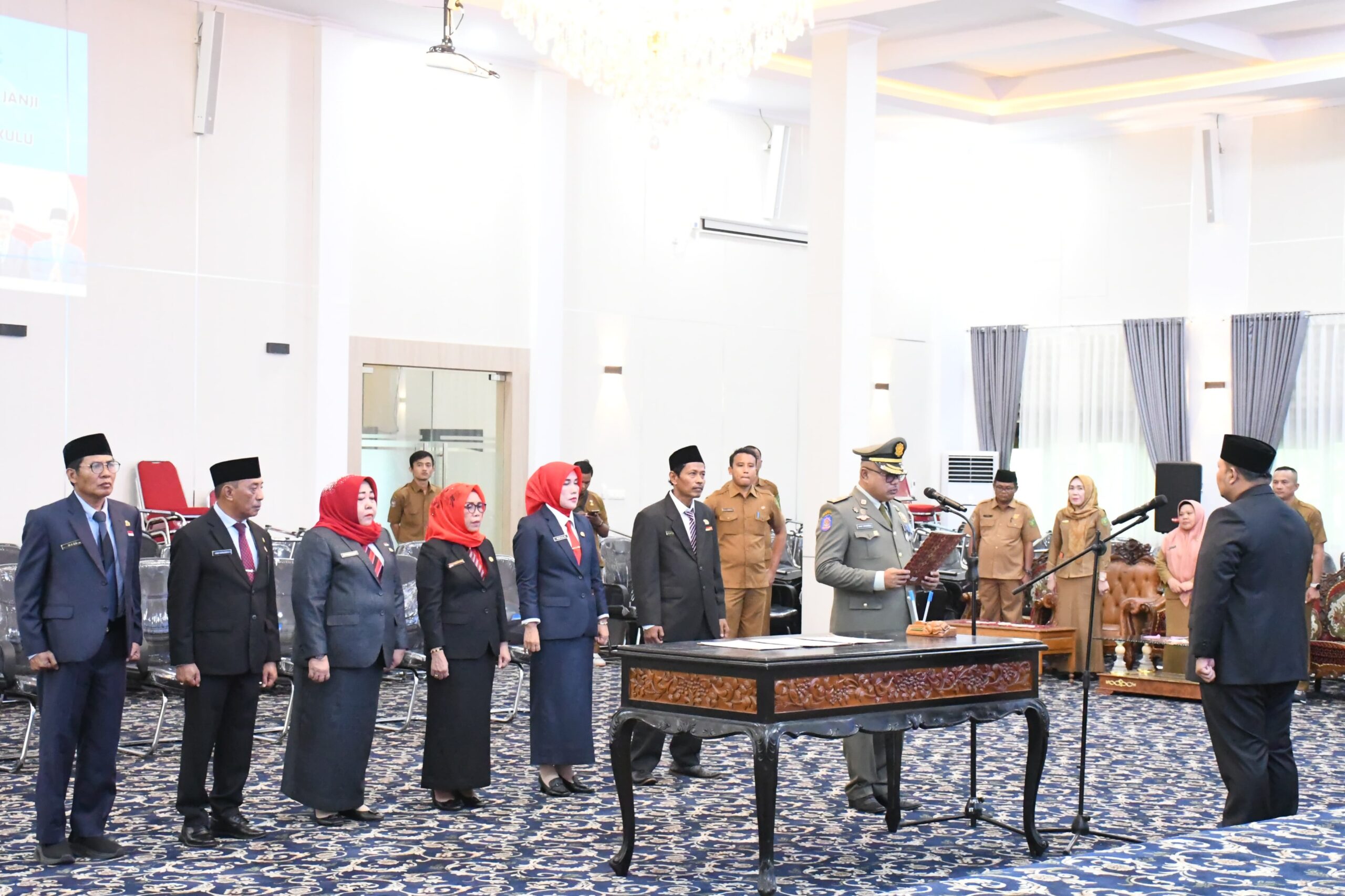 Bengkulu,InfoPublik – Pemerintah Kota (Pemkot) Bengkulu kembali melakukan rotasi dan pengisian jabatan pimpinan tinggi pratama. Sebanyak tujuh pejabat eselon II resmi dilantik dan diambil sumpah/janji jabatannya oleh Wakil Walikota Bengkulu Ronny PL Tobing di ruang Hidayah I, Kantor Walikota Bengkulu, Kelurahan Bentiring, Selasa (4/11/2025).