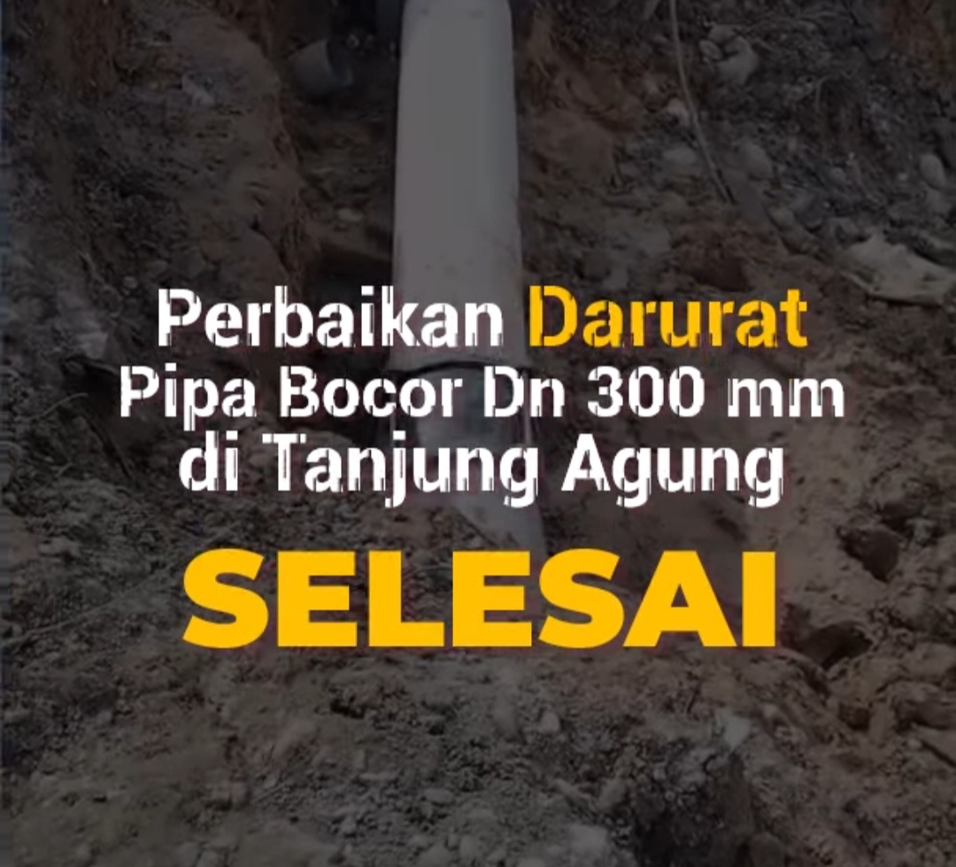 Gangguan pasokan air ini disebabkan oleh kebocoran serius pada pipa distribusi utama DN 300 mm dan pipa subdistribusi PVC DN 80 mm di area Pintu Air Tanjung Agung.
