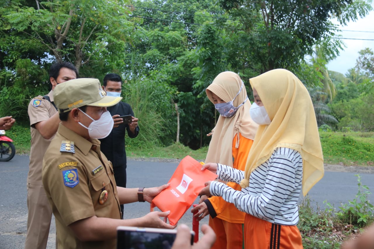 Sebelum berpamitan, Dedy berpesan kepada Sania agar hanya menggunakan HP tersebut untuk belajar dan kepentingan hal-hal yang positif saja. Ia juga berpesan agar selalu berhati-hati di jalan saat membantu ibu menyapu.(Release/Media Center Kominfo Kota Bengkulu)