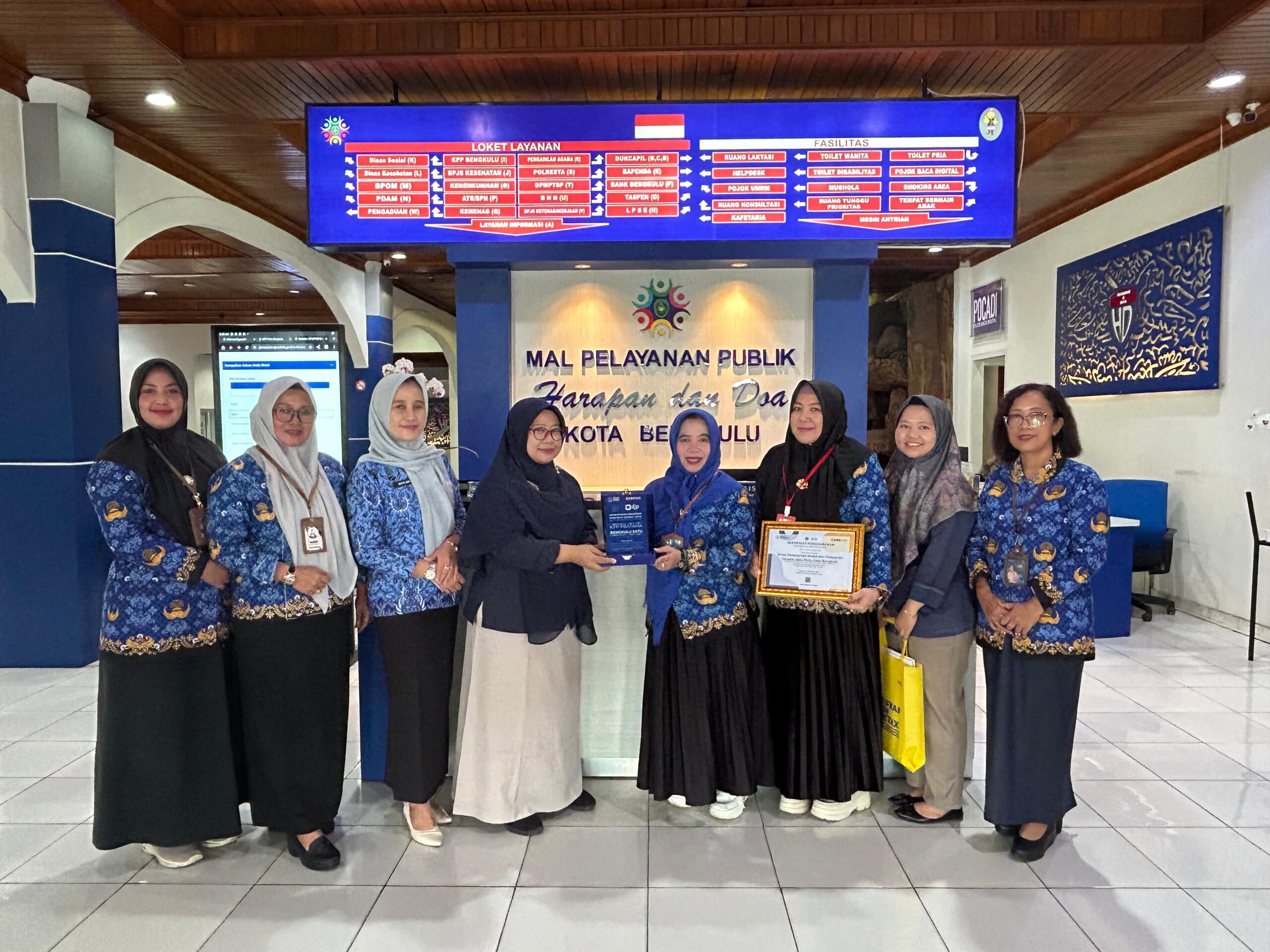 Piagam penghargaan sekaligus pelakat itu diantar dan diserahkan langsung oleh Plh Kepala Seksi Penjaminan Kualitas Data KPP Pratama Bengkulu Satu, Prima Permatasari kepada Plt Kadis DPMPTSP Kota Bengkulu Sri Putri Yani, BZ, SH, MH di Mal Pelayanan Publik (MPP), Rabu (17/12/25).