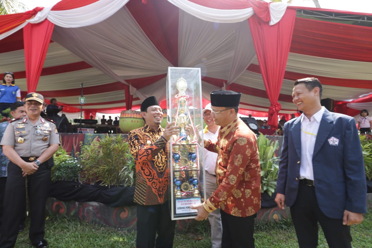 “Piala ini sekadar kami titipkan saja nanti akan kami rebut kembali,” canda Dedy Wahyudi saat menyerahkan piala bergilir ke Gubernur Bengkulu Rohidin Mersyah.