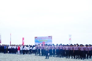 Dukungan itu ditunjukkan dengan aksi gotong royong bersih-bersih pantai dalam rangka Hari Bhayangkara ke-79. Total ada 735 personel gabungan diterjunkan.