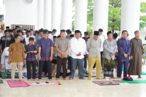 Bengkulu, InfoPublik – Walikota Bengkulu Dedy Wahyudi bersama Wakil Walikota Ronny PL Tobing melaksanakan salat iduladha 1446 H/2025 M di Masjid Agung At-Taqwa, Kelurahan Anggut Atas, Kecamatan Ratu Samban yang dipimpin oleh Ustaz Arpan Sya’ban (Iman dan khatib), Jumat (6/6/25).
