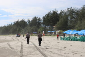 “Ya, kita bersama Polres memberi tanda agar pengunjung kawasan pantai panjang agar berhati-hati,” ujar Kadinsos Sahat M Situmorang saat diwawancara.