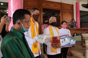 Saat penyerahan, Salah Satu Pendeta, Romo Sun Lie mengucapkan terimakasih telah diberikan bantuan beras dan mie instan yang diantarkan langsung oleh Walikota dan Wakil Walikota Bengkulu.