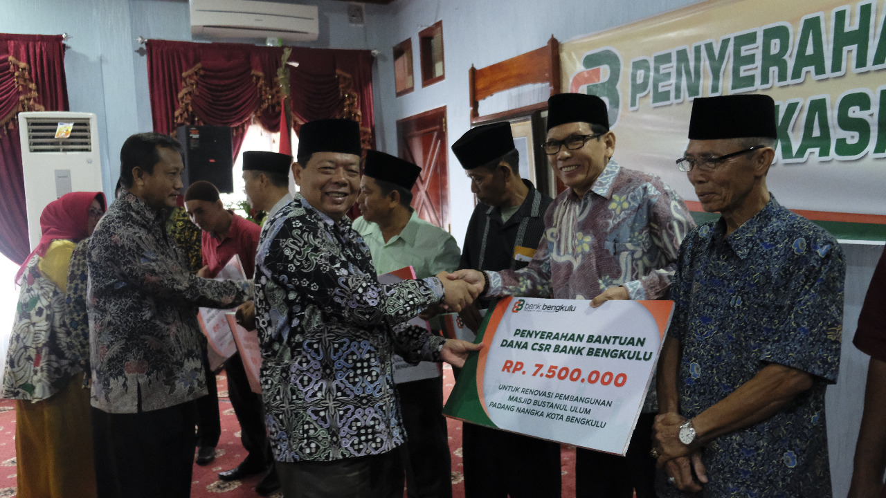Direktur Utama Bank Bengkulu H. Agus Salim bersama Penjabat Walikota H. Budiman Ismaun menyerahkan secara bersama kepada pengurus masjid dan musala. Saat ini Bank Bengkulu sudah menyebar ke pelosok daerah dengan 11 kantor cabang dan 52 kantor unit .
