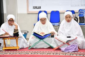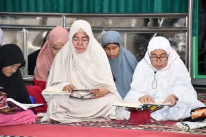 Tampak para ibu-ibu majelis ta’lim masjid Nurul Ilmi begitu semangat dan kompak menjalankan berbagai kegiatan untuk mendukung program religius Pemkot Bengkulu.