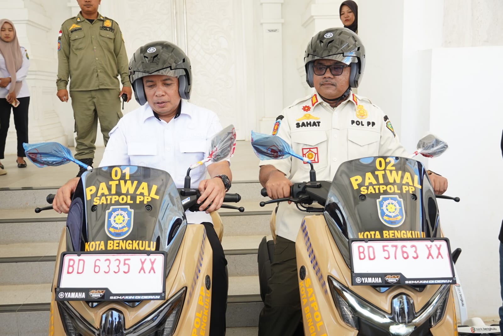 Sebagai bentuk dukungan nyata, Walikota Bengkulu Dedy Wahyudi menyerahkan bantuan alat transportasi operasional untuk personel Satuan Polisi Pamong Praja (Satpol PP), baru-baru ini.