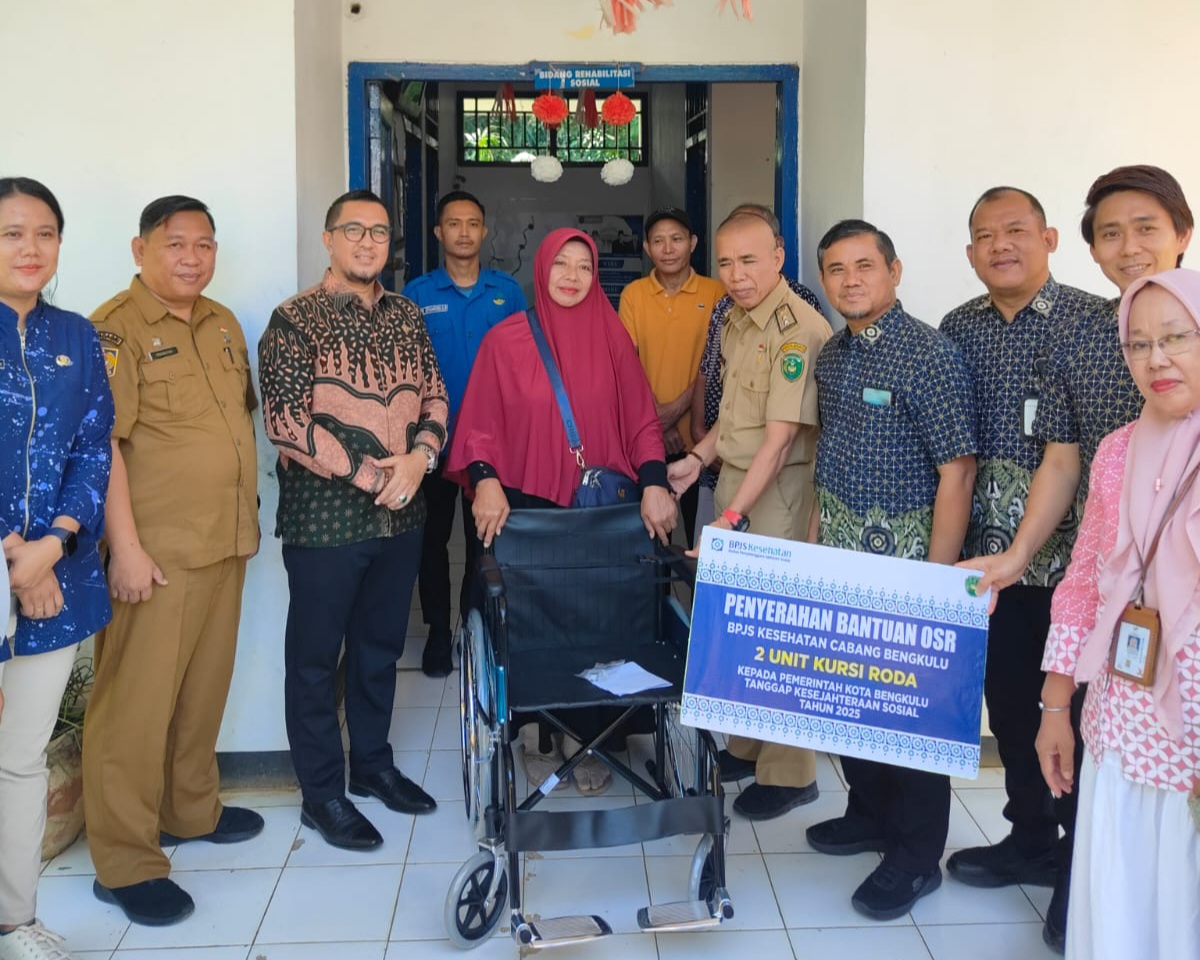 Sebagai bagian dari program tersebut, BPJS Kesehatan Cabang Bengkulu menyerahkan bantuan dua unit kursi roda kepada penerima manfaat di Kantor Dinas Sosial Kota Bengkulu.