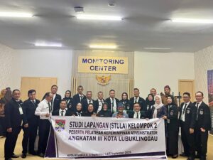 Bengkulu, InfoPublik- Dinas Komunikasi dan Informatika (Diskominfo) Kota Bengkulu menerima rombongan studi lapangan Pelatihan Kepemimpinan Administrator (PKA) Pemkot Lubuk Linggau yang berlangsung di ruang Monitoring Center (Moncen), Kamis (4/9/25).