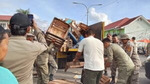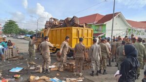 Bengkulu,InfoPublik – Satpol PP Kota Bengkulu akhirnya mengambil langkah tegas terhadap ratusan pedagang pasar Minggu yang membandel, masih berjualan atau membuka lapak di jalan depan PTM dan depan Mega Mall.