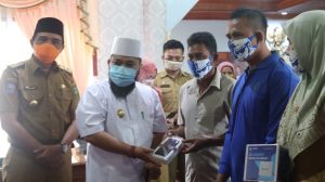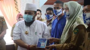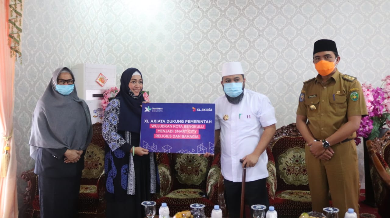 Bengkulu, InfoPublik – Walikota Bengkulu Helmi Hasan bersama perwakilan PT XL Axiata yakni Government & Public Sector Enterprise Business Solution, Ria Putri Sekarwidati didampingi Kadis Pendidikan Kota Bengkulu Rosmayetti, Kadis Kelautan dan Perikanan Syafriandi dan dan Plt Kadis Kominfo dan Persandian Eko Agusrianto memberikan 24 unit modem gratis dan 24 unit smartphone secara simbolis di Balai Kota Bengkulu kepada Kepala SMP dan nelayan di Kota Bengkulu, Senin (13/7/2020).
