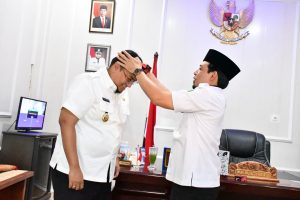 Sebagai penutup, Dedy dan Richi saling memberikan cinderamata khas daerah masing-masing. (Rilis/Media Center Kota Bengkulu).