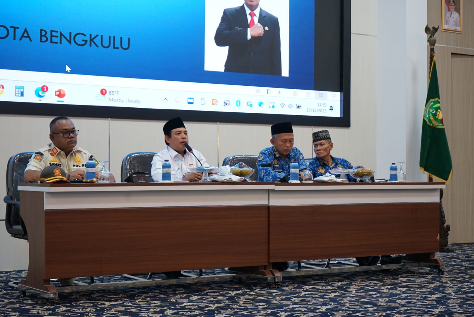 Bengkulu,InfoPublik – Walikota Bengkulu Dedy Wahyudi memberikan apresiasi atas kinerja Kasat Pol PP Kota Bengkulu Sahat Marulitua Situmorang dalam Rapat Koordinasi Mewujudkan Ketentraman dan Ketertiban yang digelar di Ruang Hidayah I Kantor Wali Kota Bengkulu, Rabu (17/12/25).