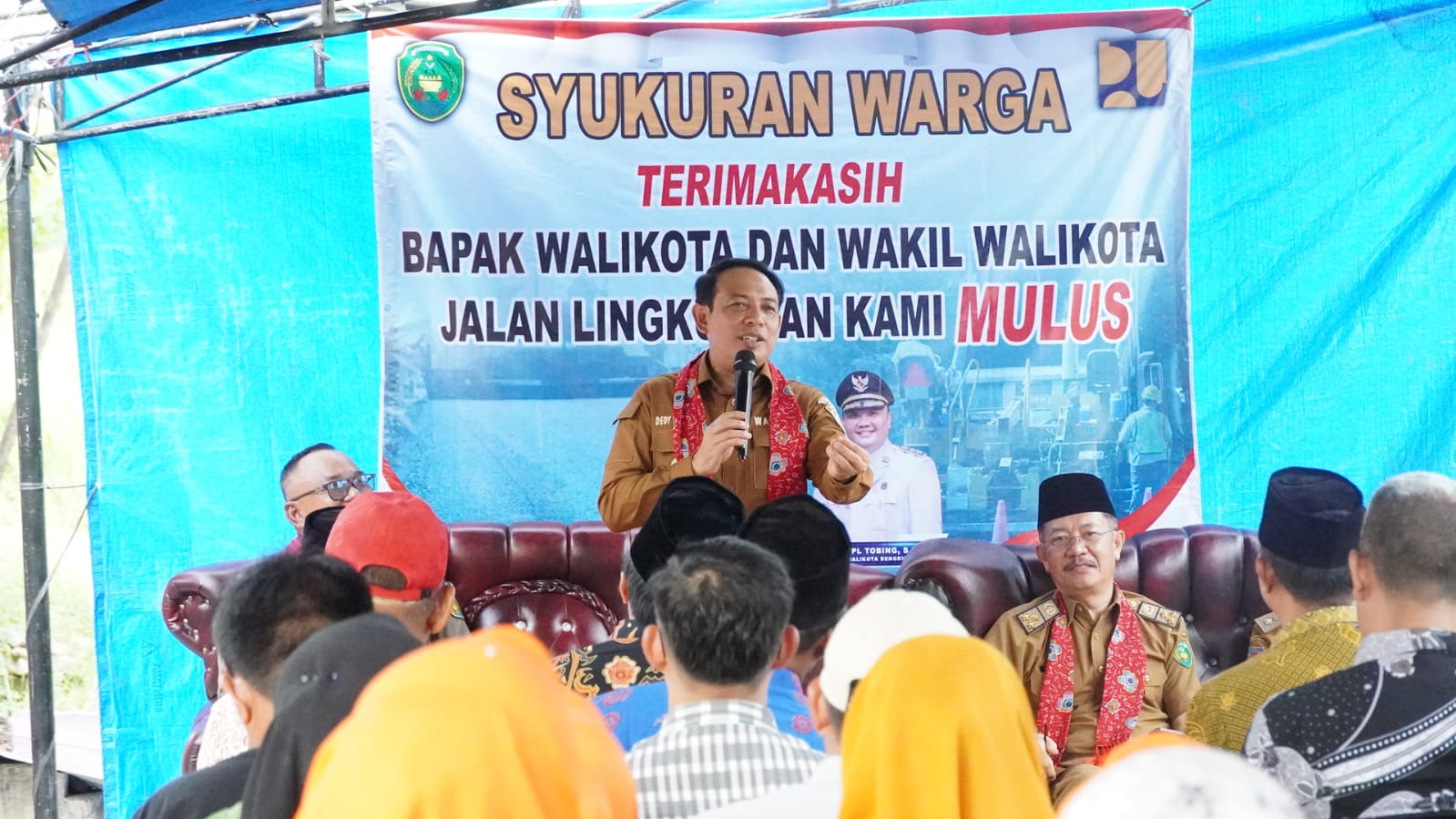 Bengkulu, InfoPublik Walikota Bengkulu, Dedy Wahyudi menghadiri acara syukuran atas tuntasnya pengaspalan jalan di Perumahan Azka Graha 3, Kelurahan Pekan Sabtu, Kecamatan Selebar baru-baru ini.