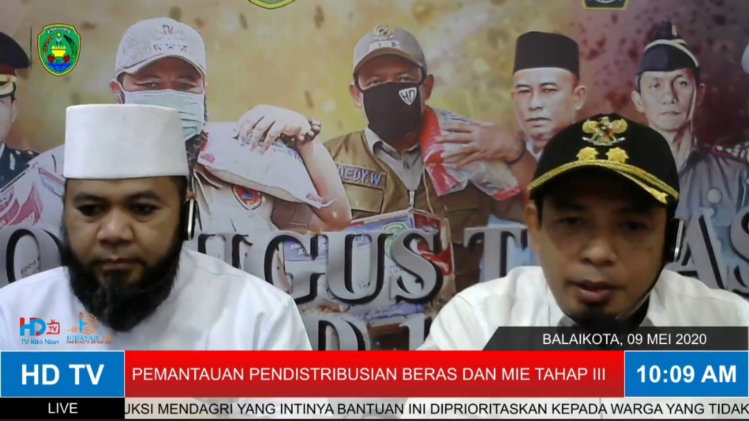 Bengkulu, InfoPublik – Walikota Bengkulu Helmi Hasan dan Wakil Walikota Dedy Wahyudi memonitoring pendistribusian bantuan beras dan mie (rasmie) tahap ke 2 melalui media sosial (medsos) yang disalurkan di Kecamatan Teluk Segara, Muara Bangkahulu, Sungai Serut, Kampung Melayu, Sabtu (9/5/2020).
