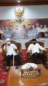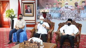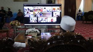 Bengkulu, InfoPublik – Jelang pendistribusian bantuan beras dan mie (Rasmie) yang akan kembali dilaksanakan secara bertahap, Walikota Bengkulu Helmi Hasan dan wawali Dedy Wahyudi didamping Plt Kepala Dinas Sosial Bujang HR menggelar rakor melalui video conference dengan seluruh Camat Kota Bengkulu, Jumat (8/5/2020).