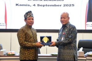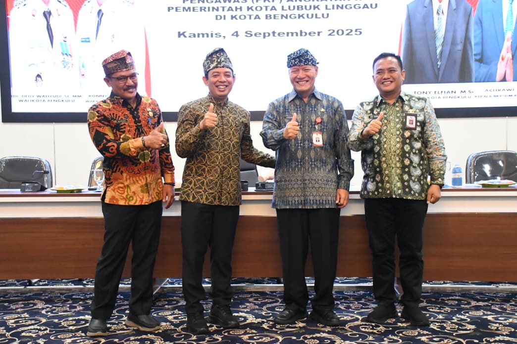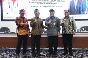 Bengkulu, InfoPublik – Walikota Bengkulu Dedy Wahyudi bersama Pj Sekda Tony Elfian dan para Kepala OPD menyambut baik kehadiran peserta studi lapangan Pelatihan Kepemimpinan Administrator (PKA) angkatan III dan Pelatihan Kepemimpinan Pengawas (PKP) angkatan II, Pemerintah Kota Lubuk Linggau di ruang Hidayah I, Kantor Walikota, Kamis (4/9/25).