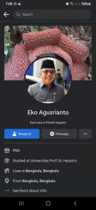 Salah satu pegawainya atas nama Rahmat Novri mengaku bahwa akun FB “Eko Agusrianto” telah mengajaknya berteman atau meng-addnya. Tetapi dia tahu bahwa itu akun palsu.