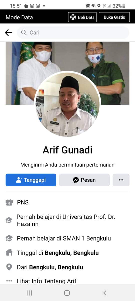 Bengkulu,InfoPublik – Jika sebelumnya ada akun facebook palsu mengatas namakan Kadis Kominfosan Kota Bengkulu Eko Agusrianto dan akun whatsapp palsu mengatas namakan Kadis Lingkungan Hidup Medi Pebriansyah, terbaru muncul akun palsu lainnya di facebook mengatas namakan Sekda Arif Gunadi.